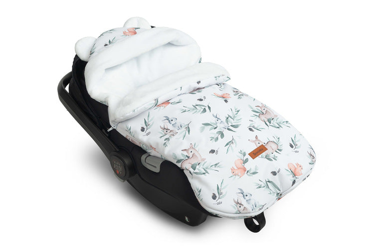 Conceput pentru cei mai mici copii, cu detalii adorabile pentru urechi pe glugă. Are un strat exterior impermeabil de înaltă calitate, cu un model frumos. În interior există o țesătură nețesută din silicon pufoasă pentru o protecție suplimentară împotriva frigului și un strat interior delicat de pluș pentru căldură. Există două fermoare pentru acces ușor pe ambele părți și în față. Este echipat cu orificii pentru centurile de siguranta in 3 puncte si poate fi folosit in scaune auto, carucioare si chiar sanie. Potrivit pentru copii de la 0-18 luni.